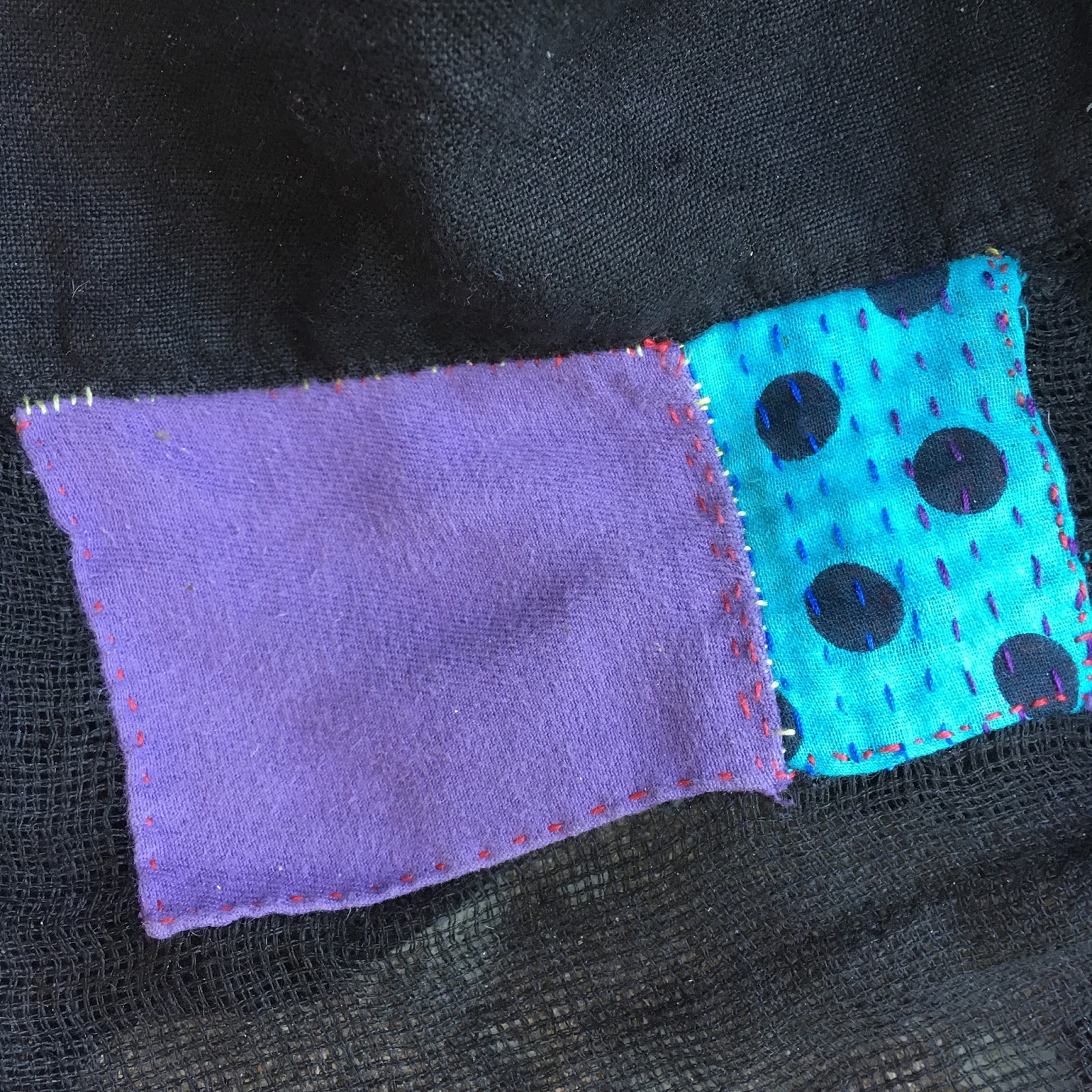 Upcycled vintage kantha quilt scraps, layered and stitched, stitched to textured paper