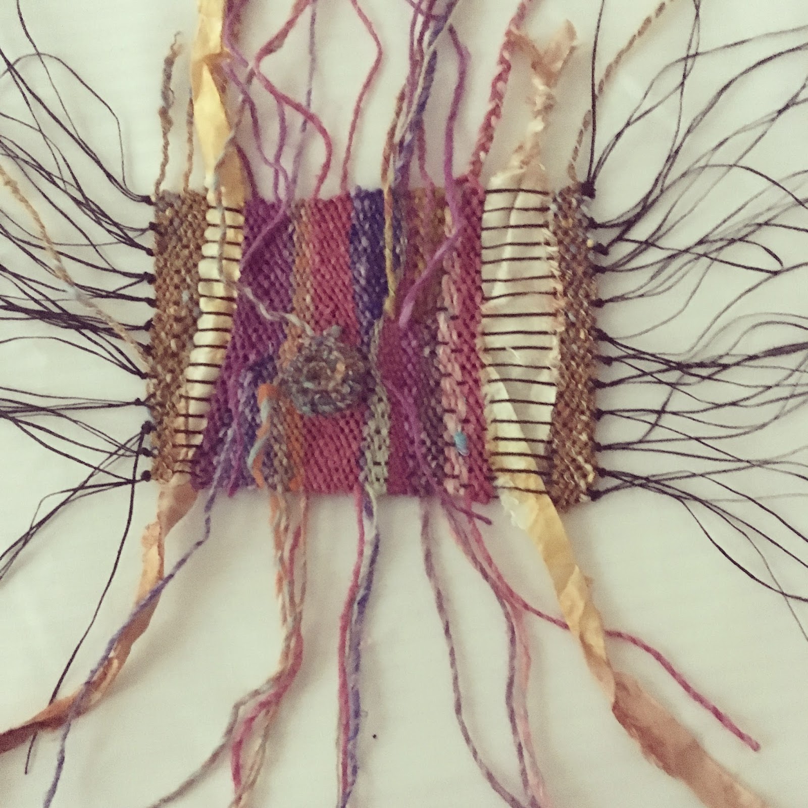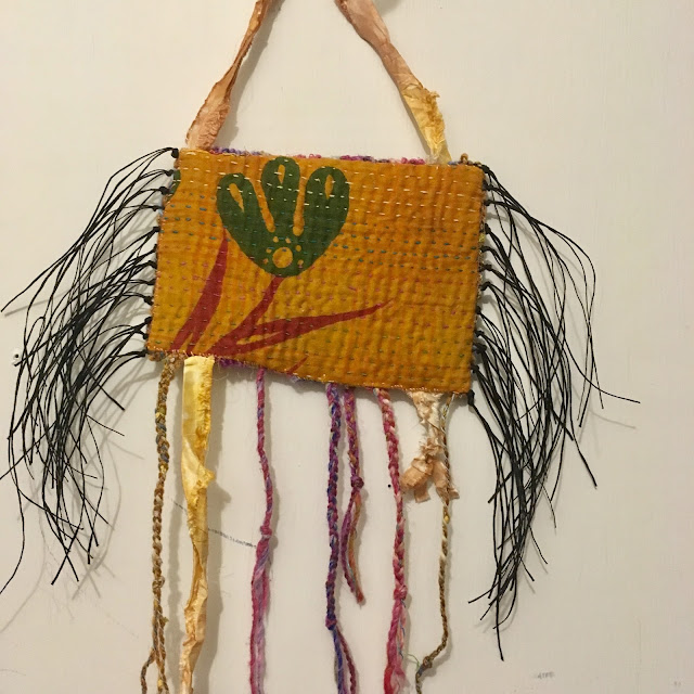 Cotton yarn, upcycled cotton & silk textile scraps, woven, stitched, braided