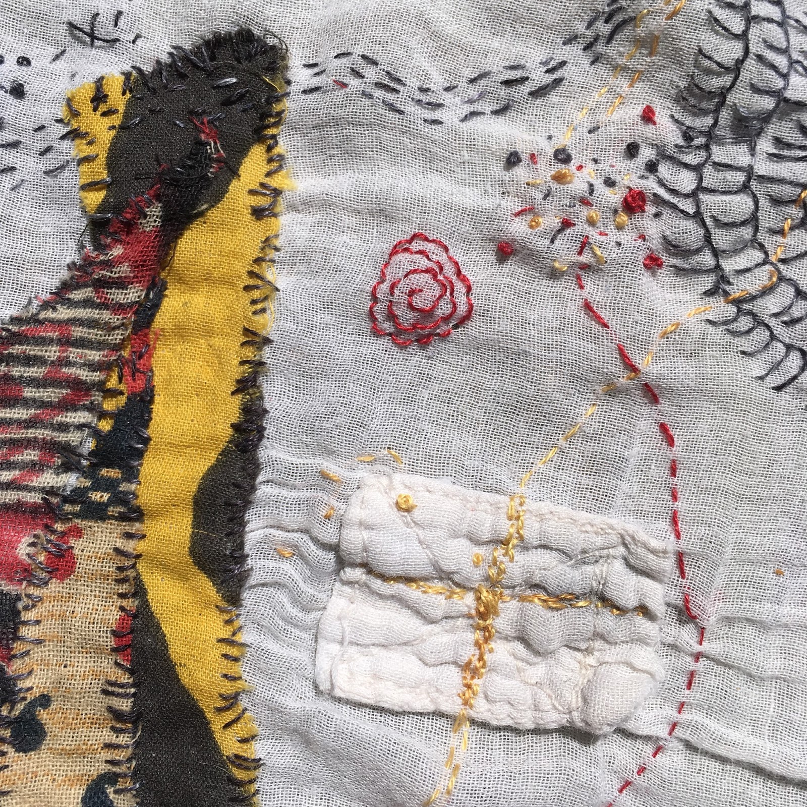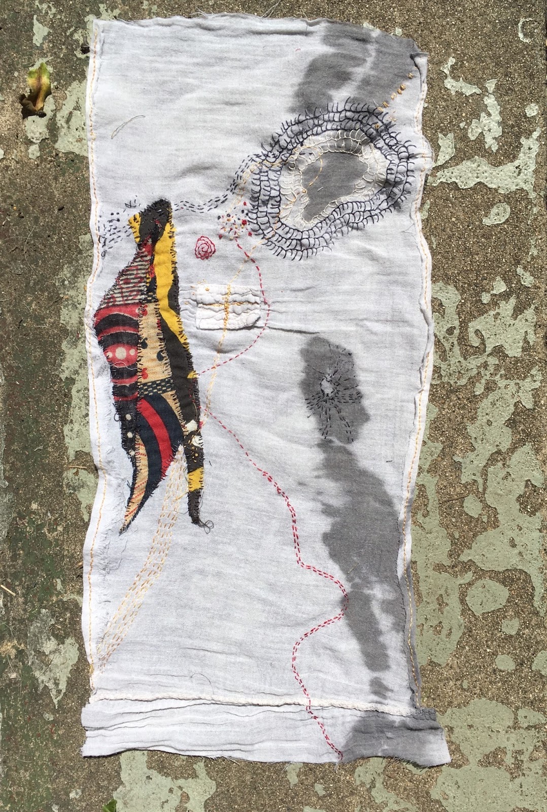 In the morning, I added a teeny bit of alum to the jar. And it darkened considerably, became a very dark maroon. Added smaller silk and cotton squares.